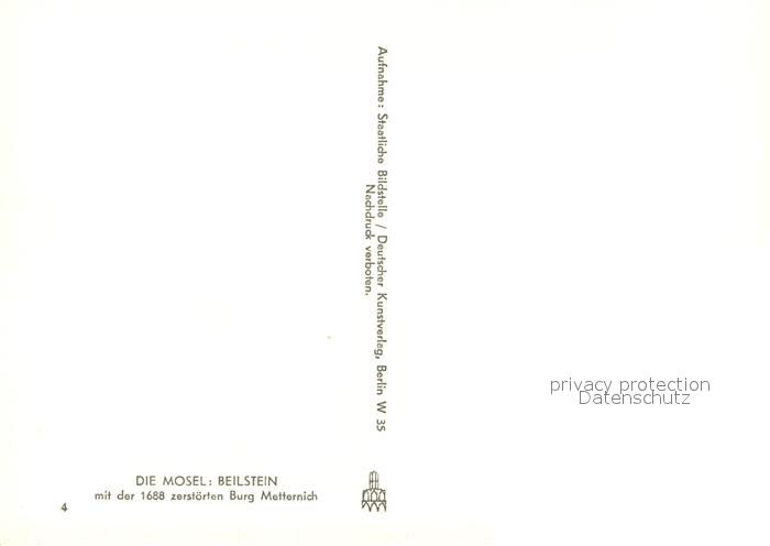 73622792 Beilstein Mosel mit Burgruine Metternich postalisch nicht gelaufen Erhaltung siehe scans [WerneD78] KatCode: 11110007135007