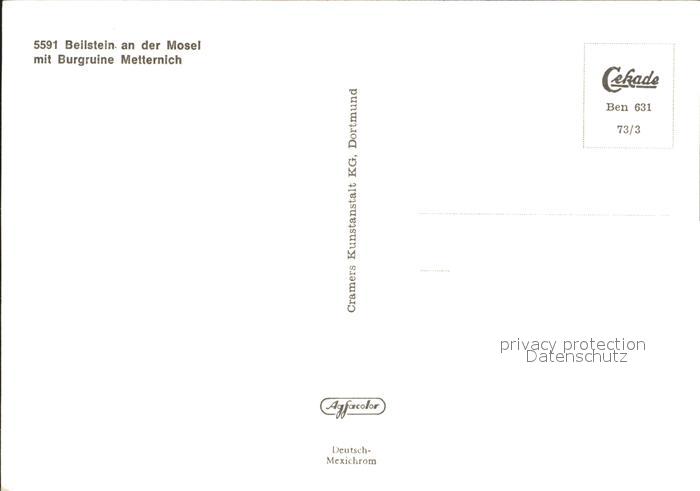 72286516 Beilstein Mosel Mosel mit Burgruine Metternich postalisch nicht gelaufen Erhaltung siehe scans KatCode: 11110007135007