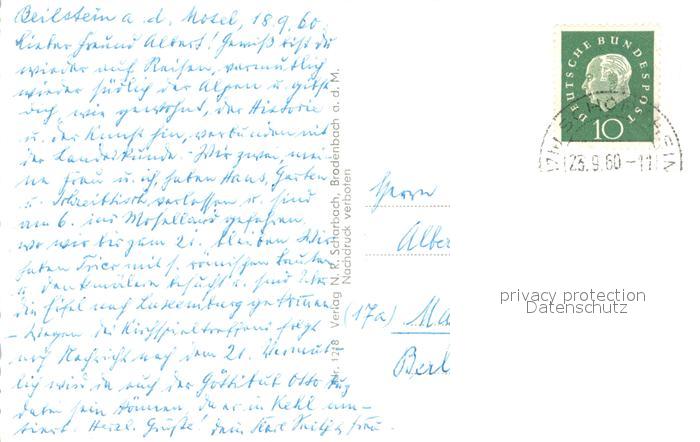 73624758 alte Postkarte Beilstein Mosel Moselpartie postalisch gelaufen Erhaltung siehe scans [LiesaD40] KatCode: 11110007135007