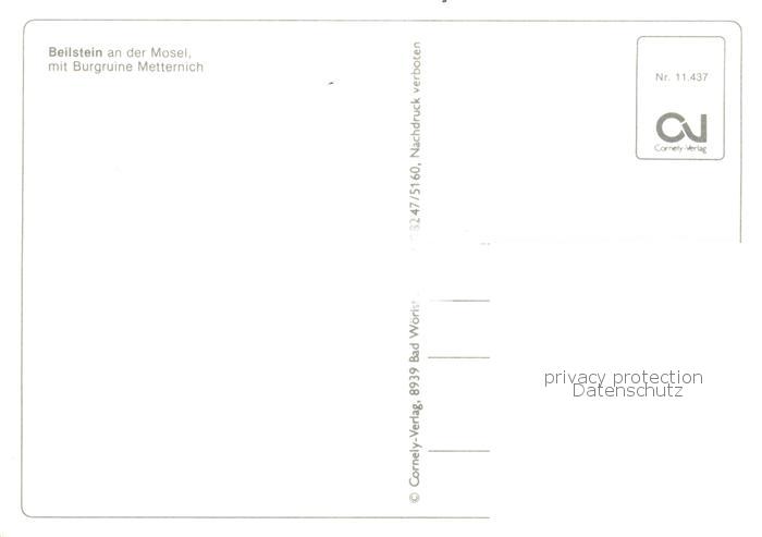 73812652 Beilstein Mosel Panorama mit Burgruine Metternich postalisch nicht gelaufen Erhaltung siehe scans [WerneD78] KatCode: 11110007135007