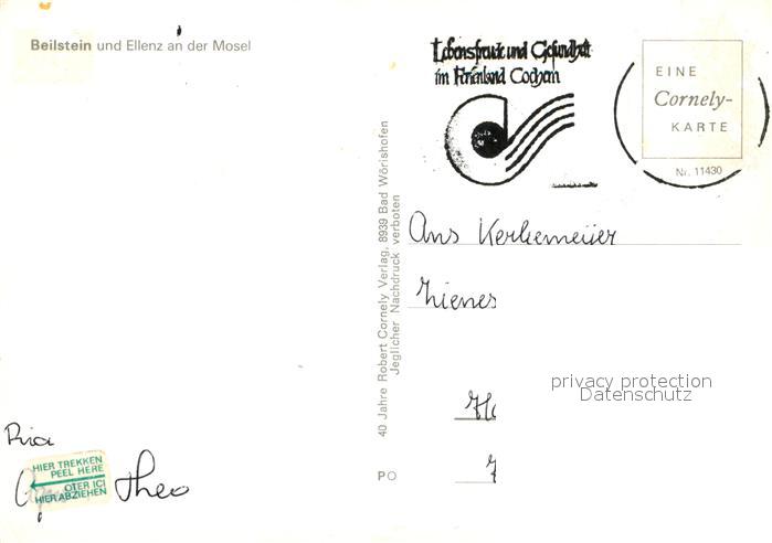 72957039 alte Postkarte Beilstein Mosel Panorama mit Ellenz Moseltal Weinberge postalisch gelaufen Erhaltung siehe scans [FriedD77] KatCode: 11110007135007