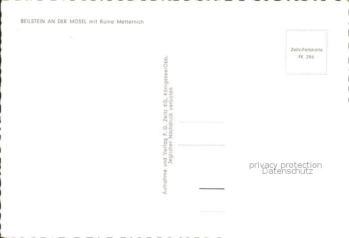 72297245 Beilstein Mosel Ruine Metternich postalisch nicht gelaufen Erhaltung siehe scans KatCode: 11110007135007