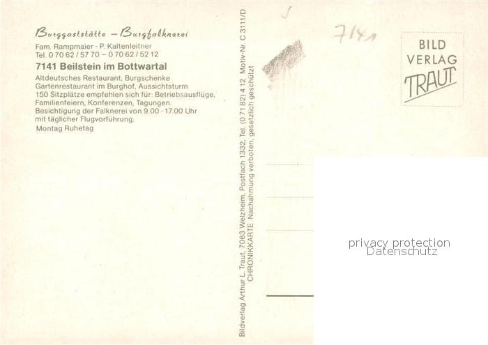 73177686 Beilstein Wuerttemberg Burg Hohenbeilstein Burghof Falkner Kalseradler Chronik Wappen postalisch nicht gelaufen Erhaltung siehe scans [FriedD77] KatCode: 11110008125008