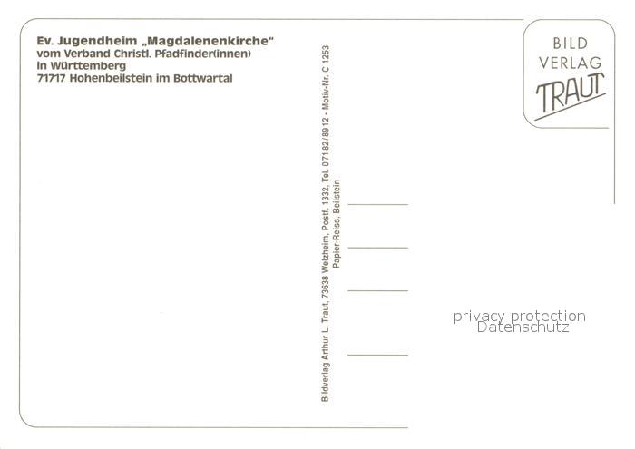 73199052 Beilstein Wuerttemberg Evangelische Jugendheim Magdalenenkirche postalisch nicht gelaufen Erhaltung siehe scans [NatalD47] KatCode: 11110008125008