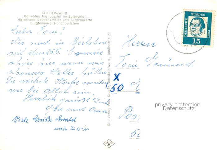 73093133 alte Postkarte Beilstein Wuerttemberg Rathaus Schloss Burgfried-Langhans postalisch gelaufen Erhaltung siehe scans [LiesaD40] KatCode: 11110008125008