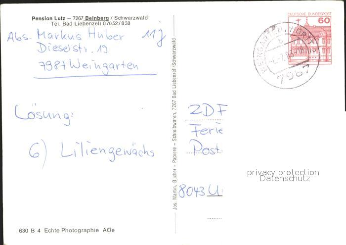72008498 alte Postkarte Beinberg Pension Lutz postalisch gelaufen Erhaltung siehe scans KatCode: 11110008235008