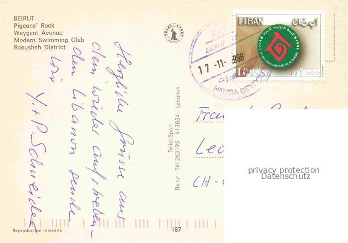 74006337 Beirut Beyrouth Libanon Pigeons Rock Weygant Avenue Swimming Club Raousheh District KatCode 13130