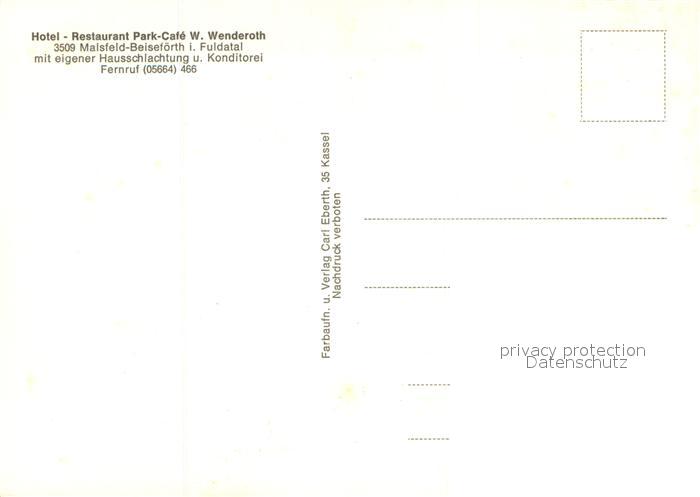 73704567 Beisefoerth Hotel Restaurant Park Cafe Wenderoth postalisch nicht gelaufen Erhaltung siehe scans [FriedD77] KatCode: 11110006634013