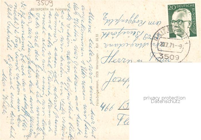 73857816 alte Postkarte Beisefoerth Malsfeld Fuldatal Ortspartie postalisch gelaufen Erhaltung siehe scans [FriedD77] KatCode: 11110006634013