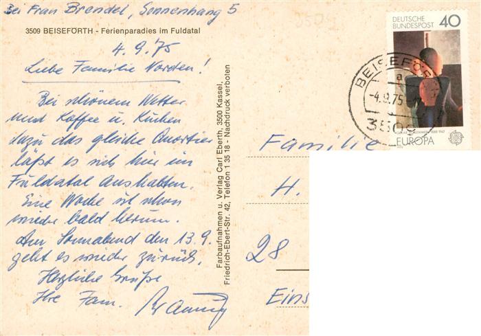 73935560 alte Postkarte Beisefoerth Malsfeld Fuldatal Panorama Ferienparadies im Fuldatal Wassertreten Wild postalisch gelaufen Erhaltung siehe scans [FriedD77] KatCode: 11110006634013