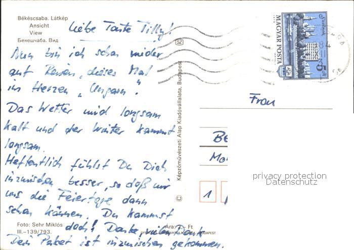 old postcard Bekescsaba Latkep Strassenpartie Innenstadt Kirche postalisch gelaufen Erhaltung siehe scans