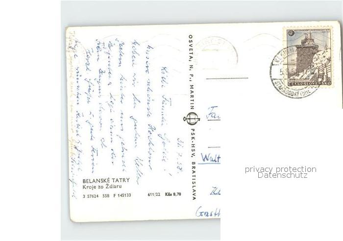 old postcard Belanske Tatry Kroje zo Zdiaru postalisch gelaufen Erhaltung siehe scans