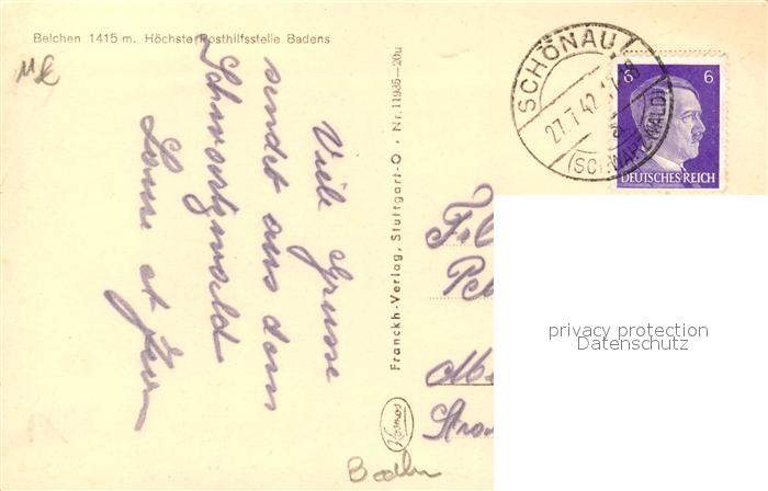 43510617 alte Postkarte Belchen Baden Berghotel Belchenhaus Gedicht postalisch gelaufen Erhaltung siehe scans [FriedD77] KatCode: 11110008336060