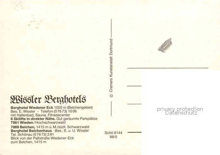 73214862 Belchen Baden Berghotel Schwarzwald Alpenpanorama Drachenfliegen postalisch nicht gelaufen Erhaltung siehe scans [FriedD77] KatCode: 11110008336060