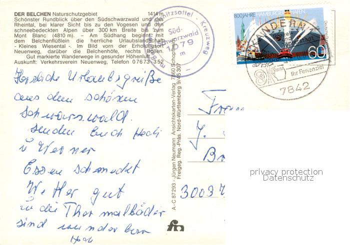 73661453 alte Postkarte Belchen Baden Fliegeraufnahme mit Rheintal und Vogesen postalisch gelaufen Erhaltung siehe scans [WerneD78] KatCode: 11110008336060
