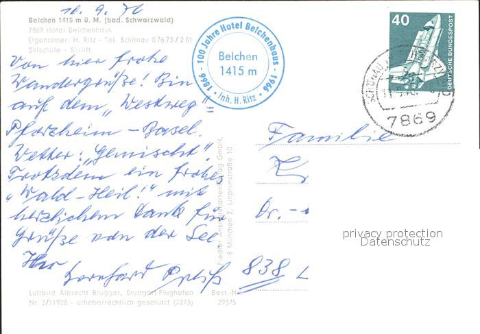 72221288 alte Postkarte Belchen Baden Hotel Belchenhaus postalisch gelaufen Erhaltung siehe scans KatCode: 11110008336060