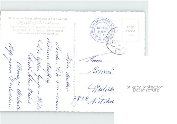 72143867 alte Postkarte Belchen Baden Hotel Belchenhaus postalisch gelaufen Erhaltung siehe scans KatCode: 11110008336060