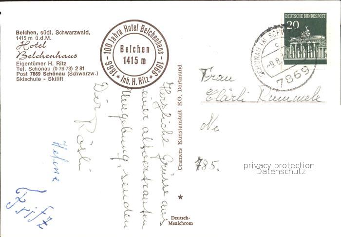 71994682 alte Postkarte Belchen Baden Hotel Belchenhaus postalisch gelaufen Erhaltung siehe scans KatCode: 11110008336060