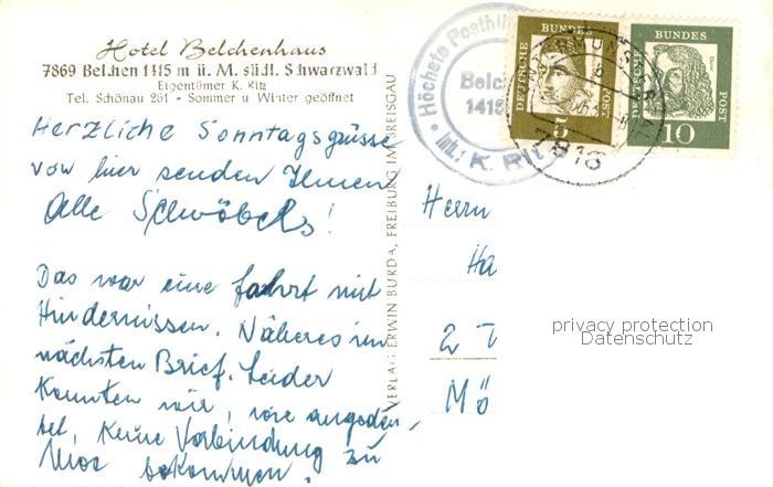 73778137 alte Postkarte Belchen Baden Hotel Belchenhaus postalisch gelaufen Erhaltung siehe scans [WerneD78] KatCode: 11110008336060