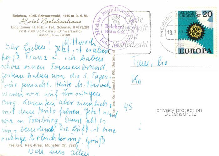 72884195 alte Postkarte Belchen Baden Hotel Belchenhaus Fliegeraufnahme postalisch gelaufen Erhaltung siehe scans [WerneD78] KatCode: 11110008336060