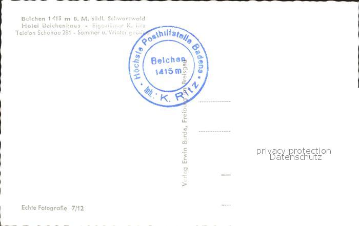 72273500 Belchen Baden Hotel Belchenhaus Schoenau Alpenblick postalisch nicht gelaufen Erhaltung siehe scans KatCode: 11110008336060