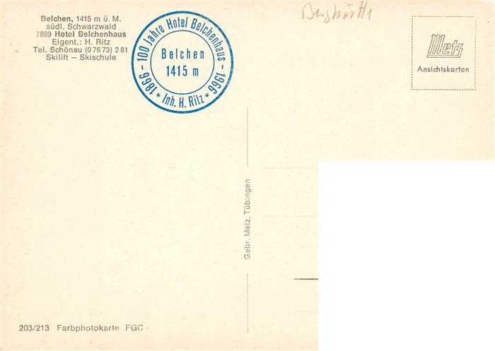 73932556 Belchen Baden Hotel Belchenhaus postalisch nicht gelaufen Erhaltung siehe scans [FriedD77] KatCode: 11110008336060