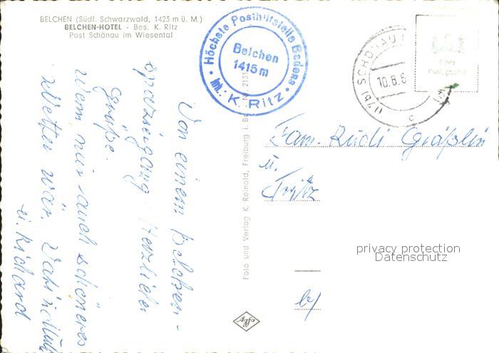 71994641 alte Postkarte Belchen Baden Hotel postalisch gelaufen Erhaltung siehe scans KatCode: 11110008336060