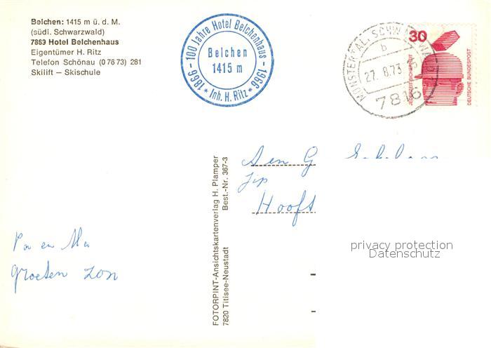 73311872 alte Postkarte Belchen Baden Panorama Restaurant Hotel Belchenhaus postalisch gelaufen Erhaltung siehe scans [KathaD81] KatCode: 11110008336060