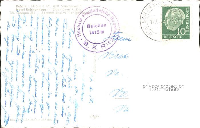 71893986 alte Postkarte Belchen Baden Schoenau postalisch gelaufen KatCode: 11110008336060
