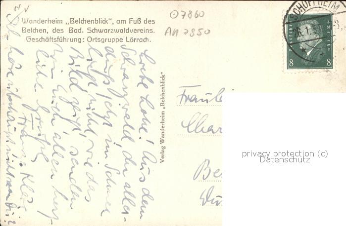 71510517 alte Postkarte Belchen Baden Wanderheim Belchenblick postalisch gelaufen Erhaltung siehe scans KatCode: 11110008336060