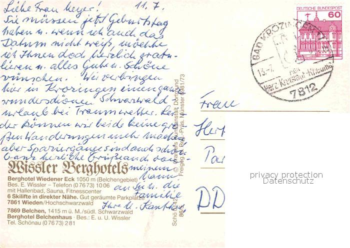 72667476 alte Postkarte Belchen Baden Wissler Berghotels postalisch gelaufen Erhaltung siehe scans [AndreD76] KatCode: 11110008336060