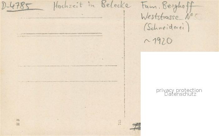 73703158 Belecke Hochzeit postalisch nicht gelaufen Erhaltung siehe scans [LiesaD40] KatCode: 11110005974044