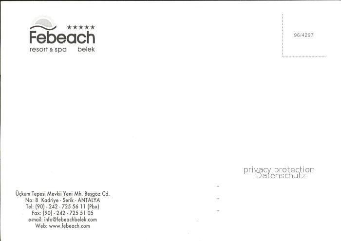 Belek Febeach Resort & Spa postalisch nicht gelaufen Erhaltung siehe scans