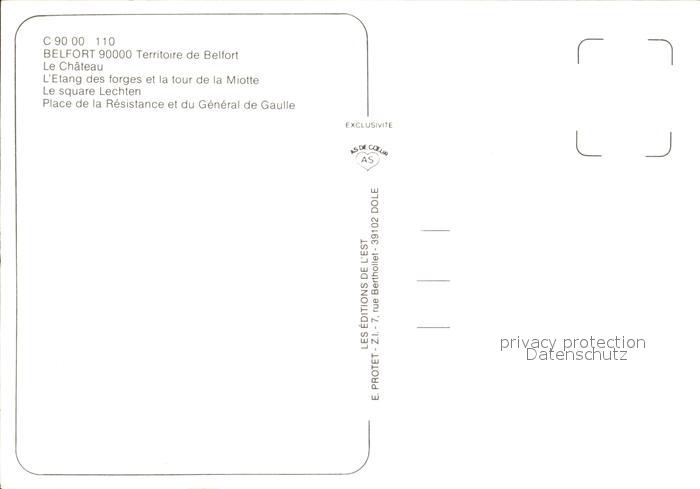 12329506 Belfort Alsace Chateau Etang des forges Tour de la Miotte Square Lechten Place de la Resistance General de Gaulle Fontaine KatCode 11170090190010