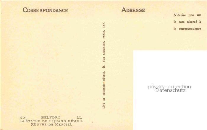 12705972 Belfort Alsace La Statue de Quand Meme oeuvre de Mercie Denkmal KatCode 11170090190010