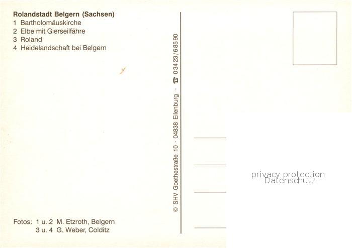 73842880 Belgern Elbe Bartholomaeuskirche Elbe mit Gierseilfaehre Roland Heidelandschaft bei Belgern postalisch nicht gelaufen Erhaltung siehe scans [FriedD77] KatCode: 11110014389040