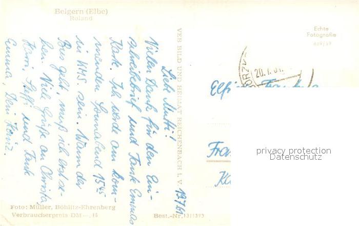 73328209 alte Postkarte Belgern Elbe Roland postalisch gelaufen Erhaltung siehe scans [KathaD81] KatCode: 11110014389040