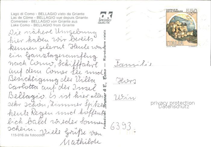 old postcard Bellagio Lago di Como Gesamtansicht postalisch gelaufen Erhaltung siehe scans