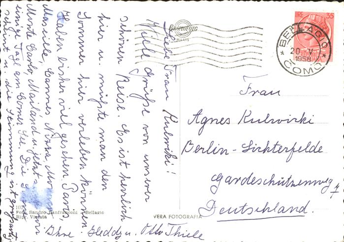 old postcard Bellagio Lago di Como Gesamtansicht postalisch gelaufen