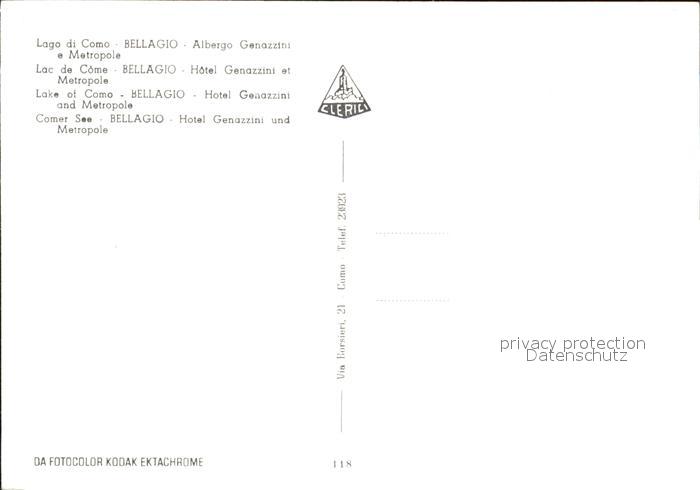 Bellagio Lago di Como Hotel Genazzini postalisch nicht gelaufen Erhaltung siehe scans [AndreD76]