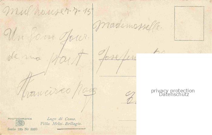 74008866 Bellagio Lago di Como IT Panorama Villa Melzi Photochromie Serie 195 Nr 3320 postalisch nicht gelaufen Erhaltung siehe scans [FriedD77] KatCode: 11240