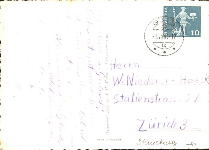 old postcard Bellagio Lago di Como Ortsansicht mit Kirche Lago Maggiore Alpenblick postalisch gelaufen Erhaltung mit Maengel