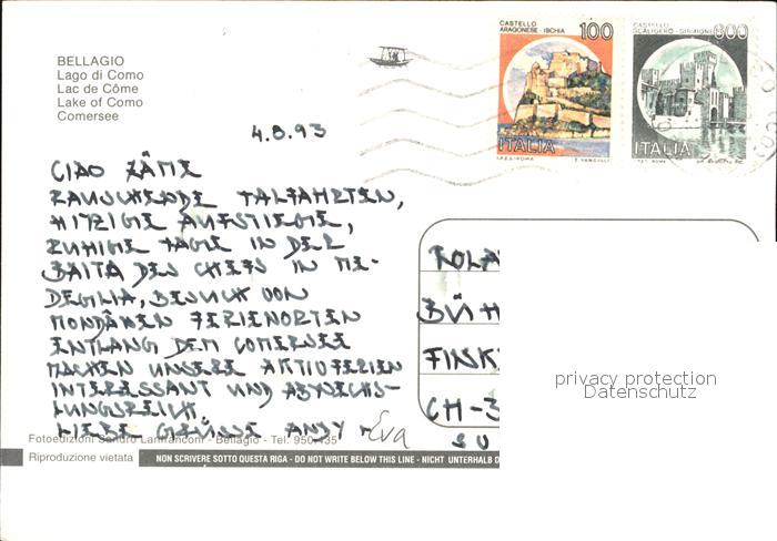 old postcard Bellagio Lago di Como Promenade postalisch gelaufen Erhaltung siehe scans