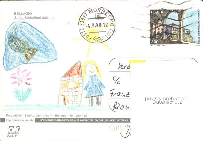 old postcard Bellagio Lago di Como Salita Serbellini dall’alto postalisch gelaufen Erhaltung siehe scans