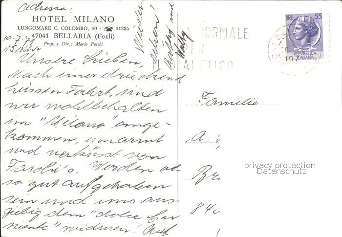 old postcard Bellaria Hotel Milano postalisch gelaufen Erhaltung siehe scans