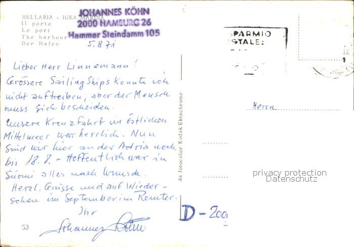 old postcard Bellaria Igea Marina Hafen postalisch gelaufen Erhaltung siehe scans