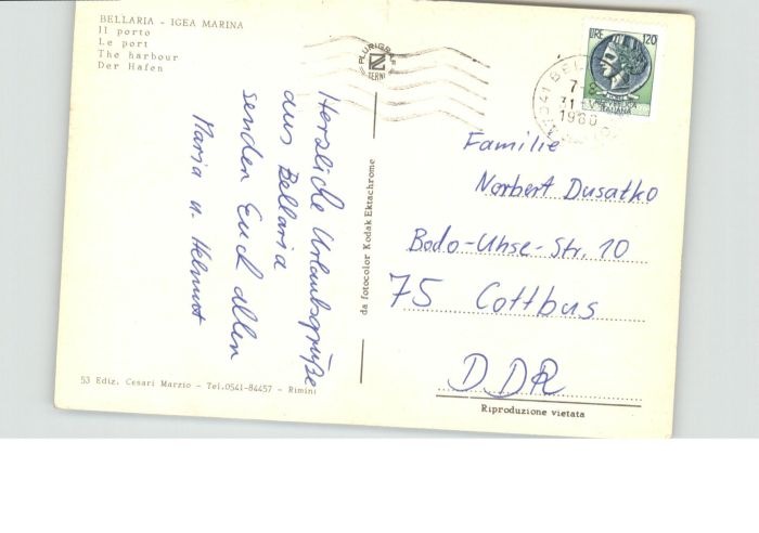old postcard Bellaria Igea Marina Porto Hafen postalisch gelaufen