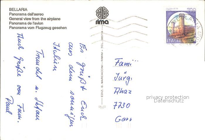 old postcard Bellaria Panorama dell aereo postalisch gelaufen Erhaltung siehe scans
