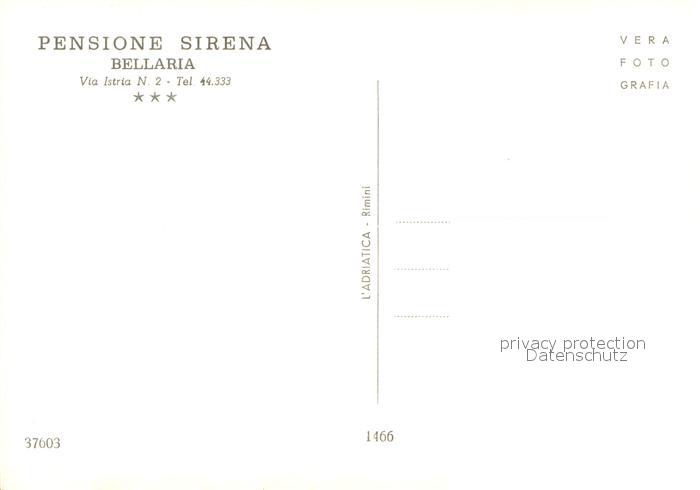 13658781 Bellaria Pensione Sirena postalisch nicht gelaufen Erhaltung siehe scans [WerneD78] Wern Katcode 11240