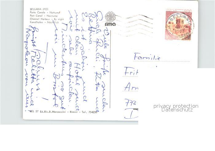 old postcard Bellaria Porto Canale Notturno postalisch gelaufen Erhaltung siehe scans